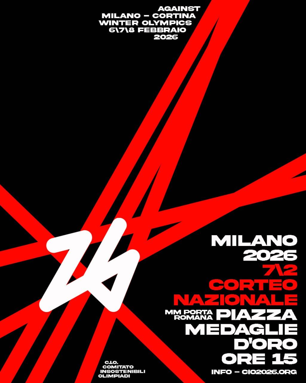 Nei giorni dell'inaugurazione delle Olimpiadi invernali più insostenibili di sempre, convochiamo una grande manifestazione nazionale sabato 7 febbraio, all'interno di giornate che saranno caratterizzate da iniziative diffuse di contestazione al grande evento privato (sponsorizzato da multinazionali come Leonardo ed Eni, sostenuto da speculatori come Coima) che sta già portando solo debito, cemento in città e montagna, sfruttamento di manodopera e precarietà, rialzo degli affitti, saccheggio di risorse idriche e devastazione delle terre alte.